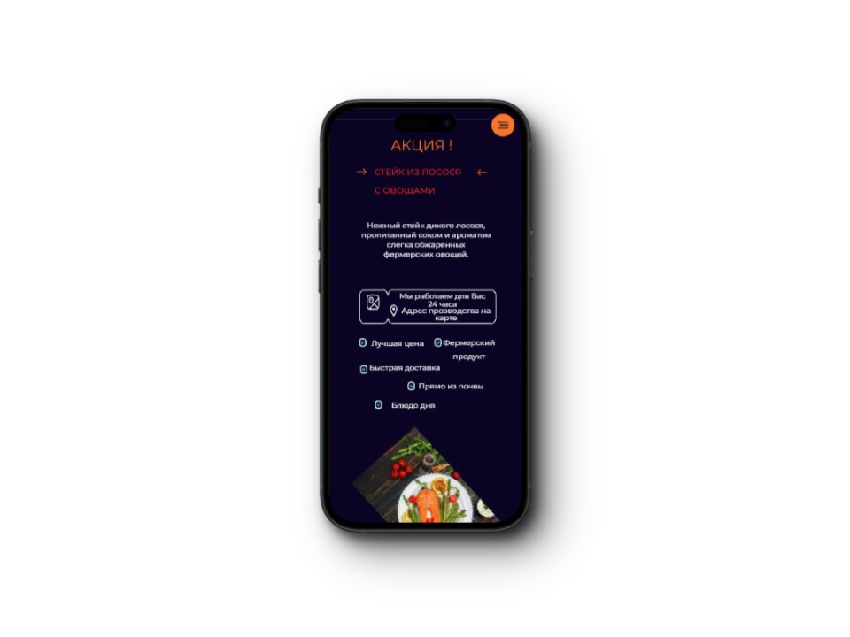 Есть возможность заказать блюда. Заказы приходят на почту и в телеграмм-канал.